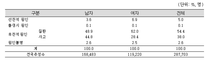 < 시각장애의 발생 원인, 출처: 2017년 장애인 실태조사, 보건복지부 >