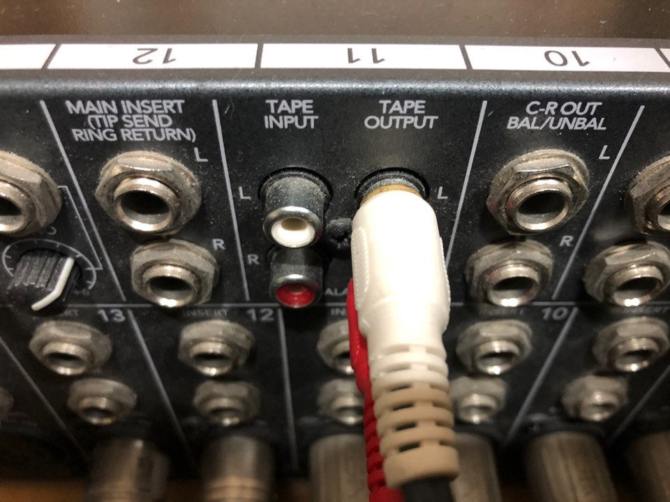 1. 오디오 믹서의 "TAPE OUTPUT"단자에 Y케이블의 RCA부분을 연결해줍니다.